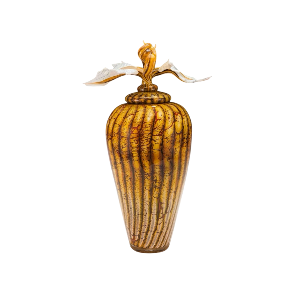 This piece is handcrafted by talented artisans using colored glass. This unique look is obtained by layering different colored glass on top of each other for hours.