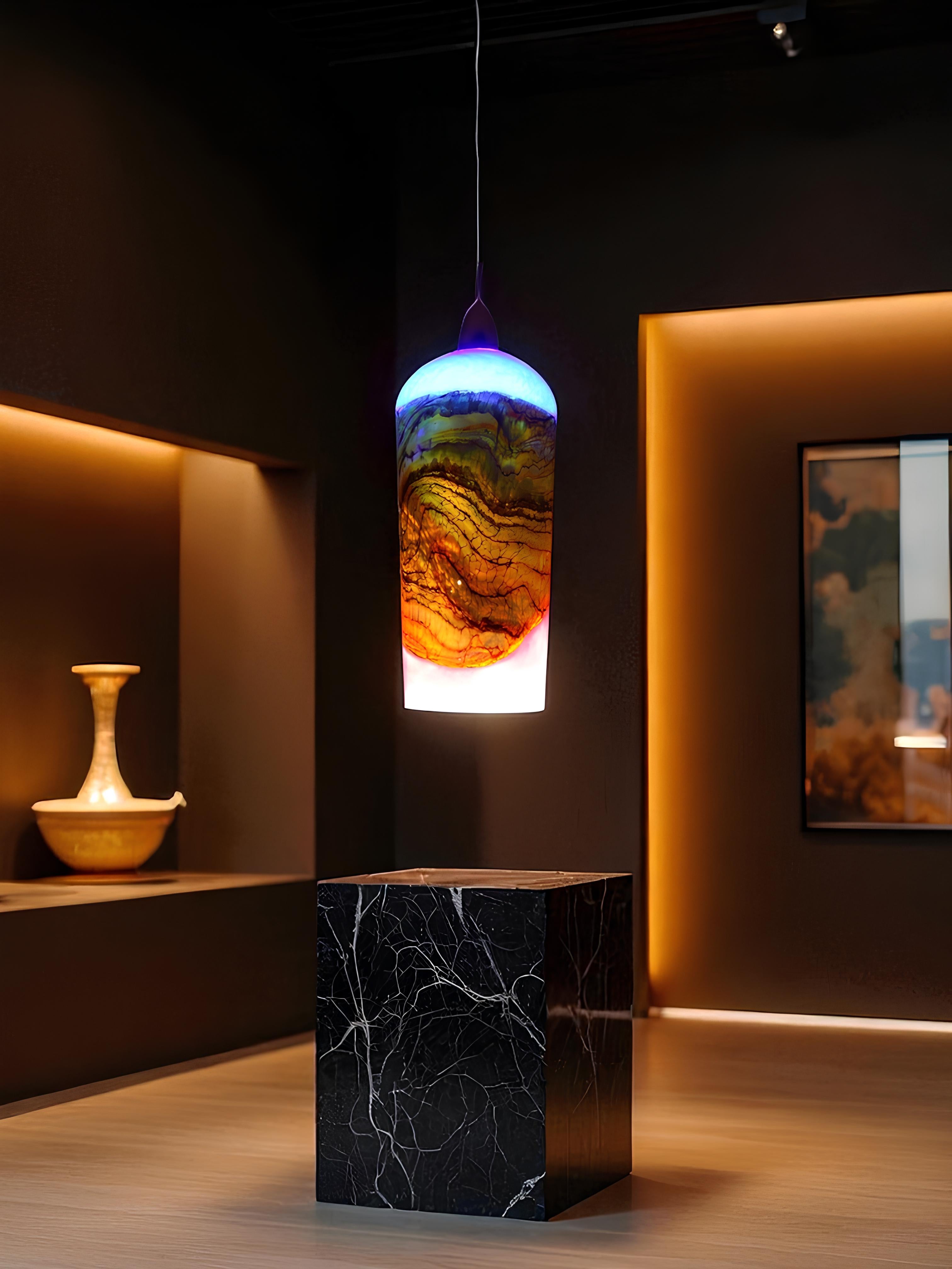 Handcrafted glass pendants designed to express your style through refined color, sculptural form, and premium LED technology.
