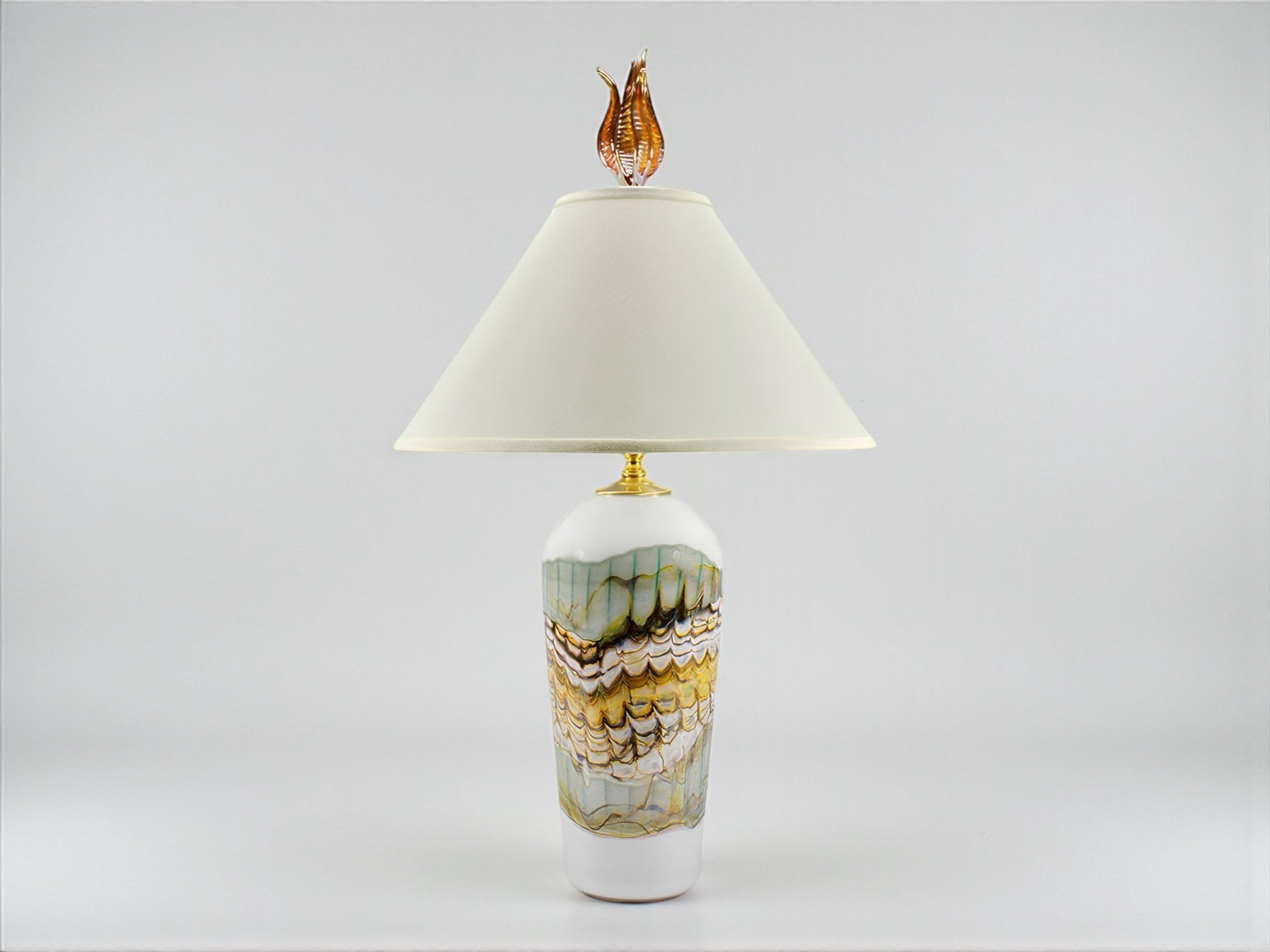 Crafted using traditional glassblowing techniques, each lamp features our signature color palettes (Strata, Batik, and Opal) and a hand-sculpted glass finial for a refined finishing touch.