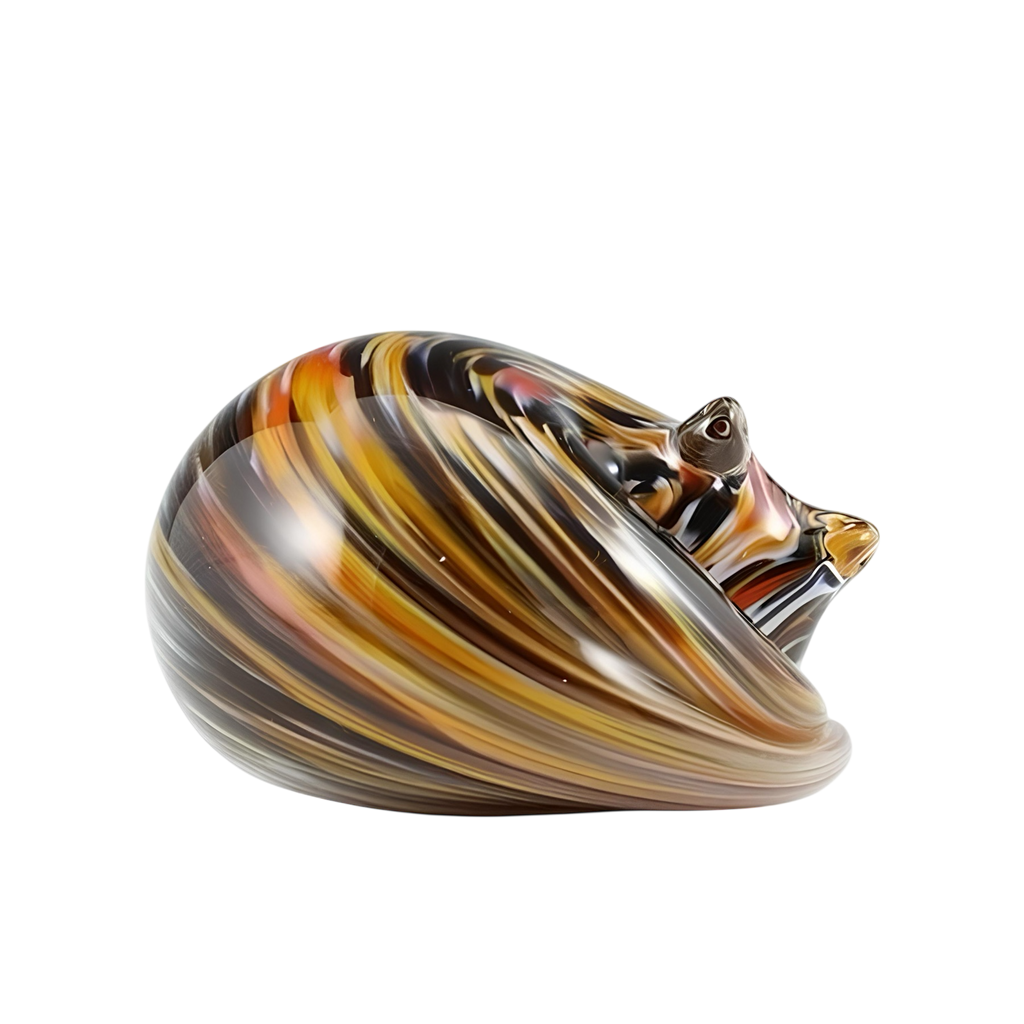 This palm-sized glass Sleeping Cat sculpture is handmade by the most talented artisans in the States. It is made by adding powdered colored glass to the molten glass gathered from the furnace, creating a variety of cat-like colors.