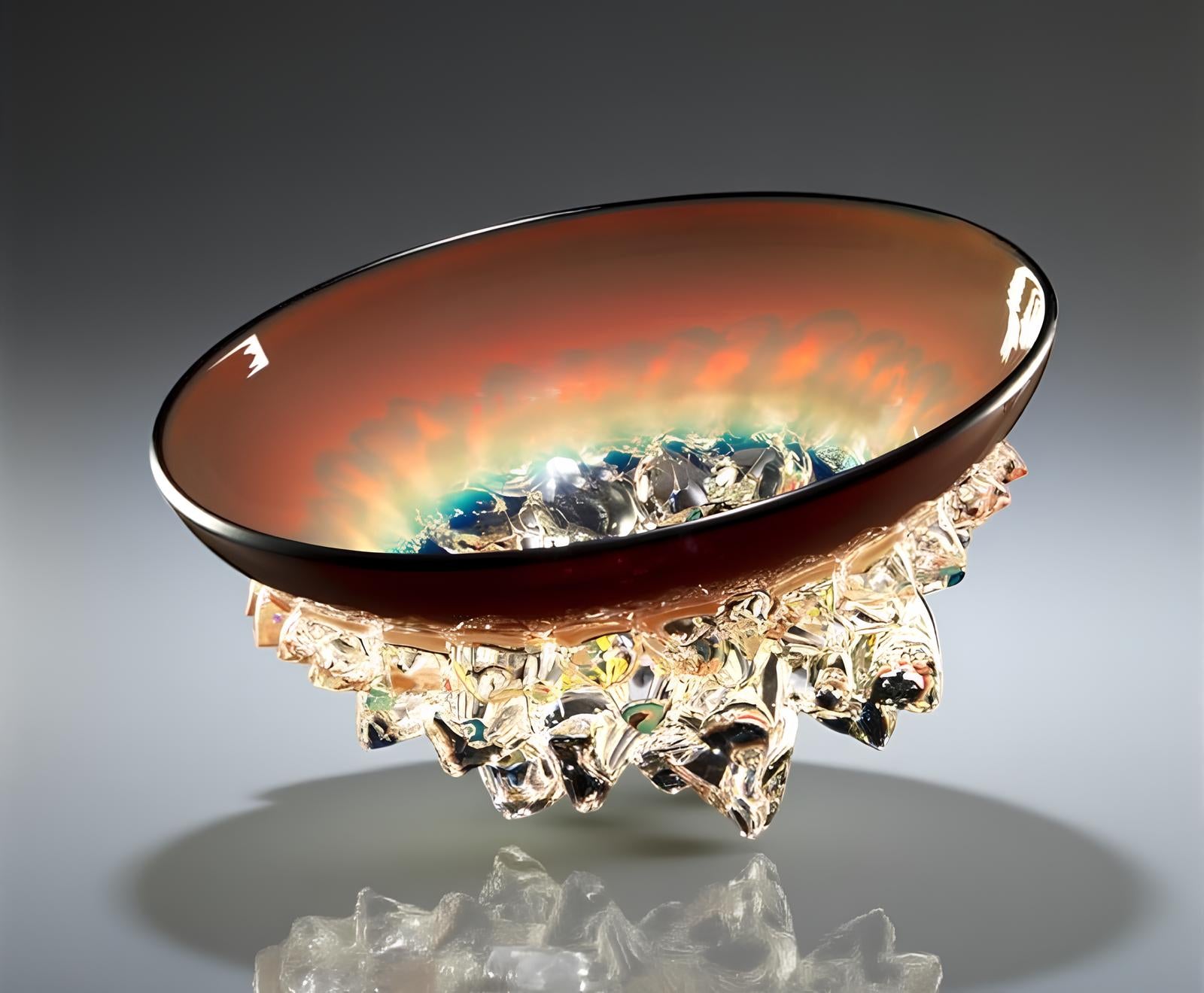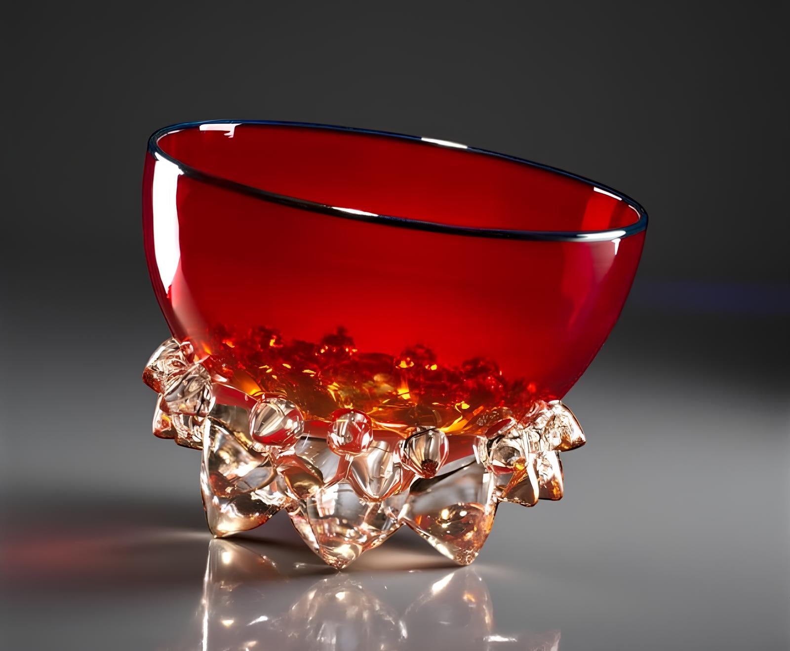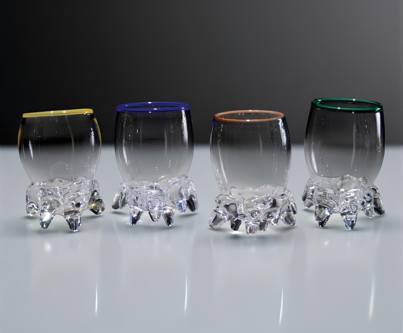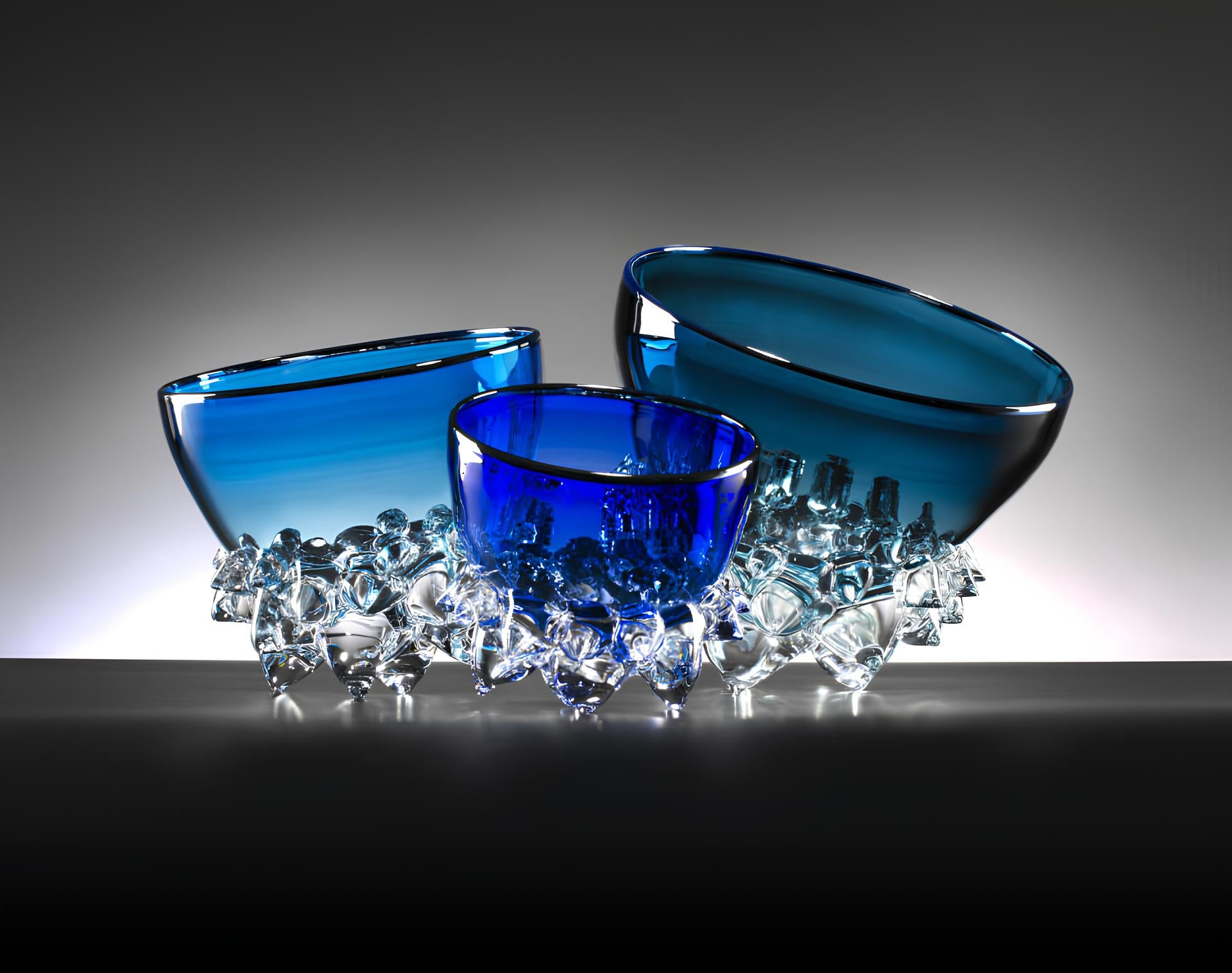 The base of each bowl features ice crystal-like glass protrusions, giving it a unique sculptural character while providing perfect balance and stability.
