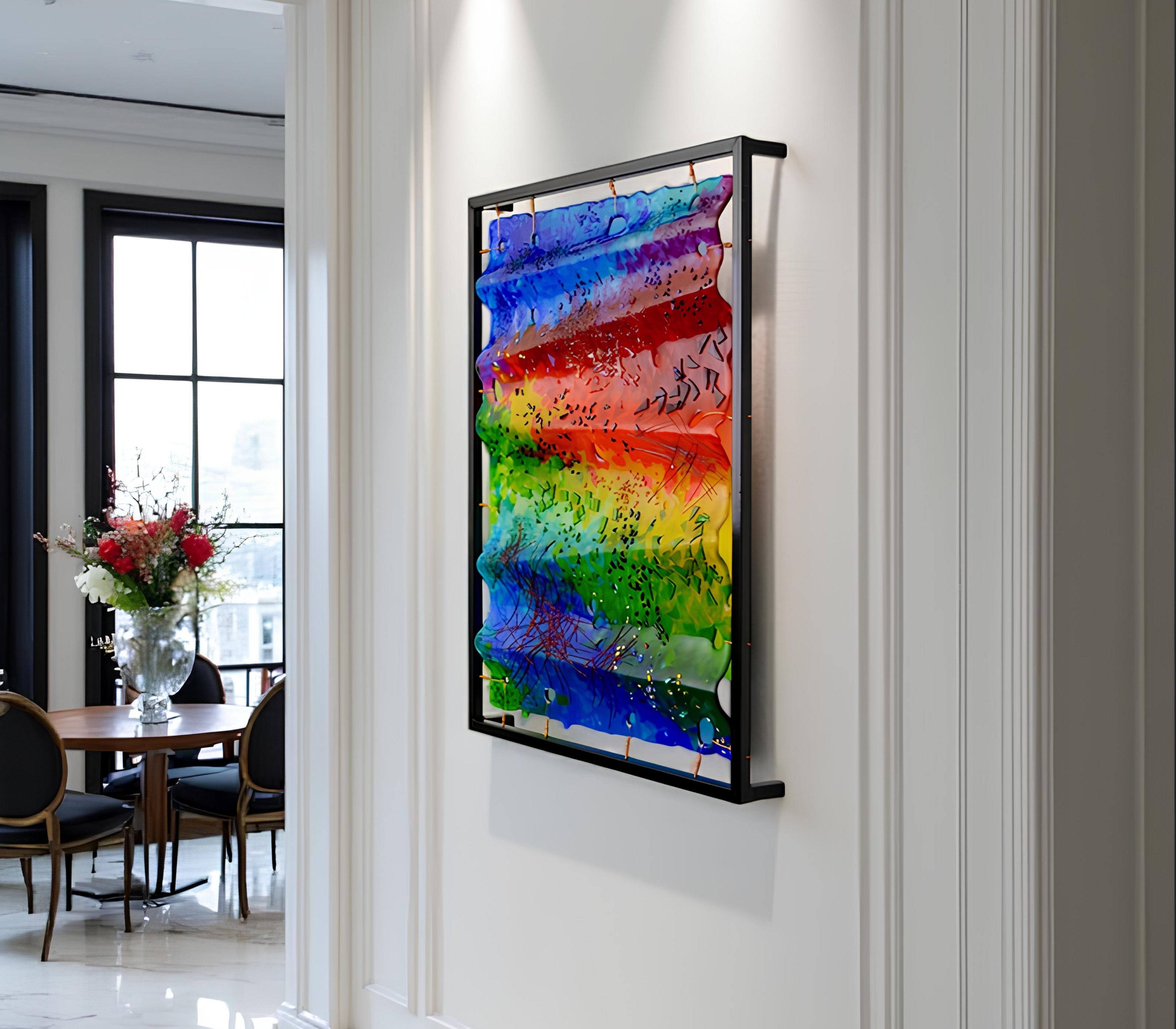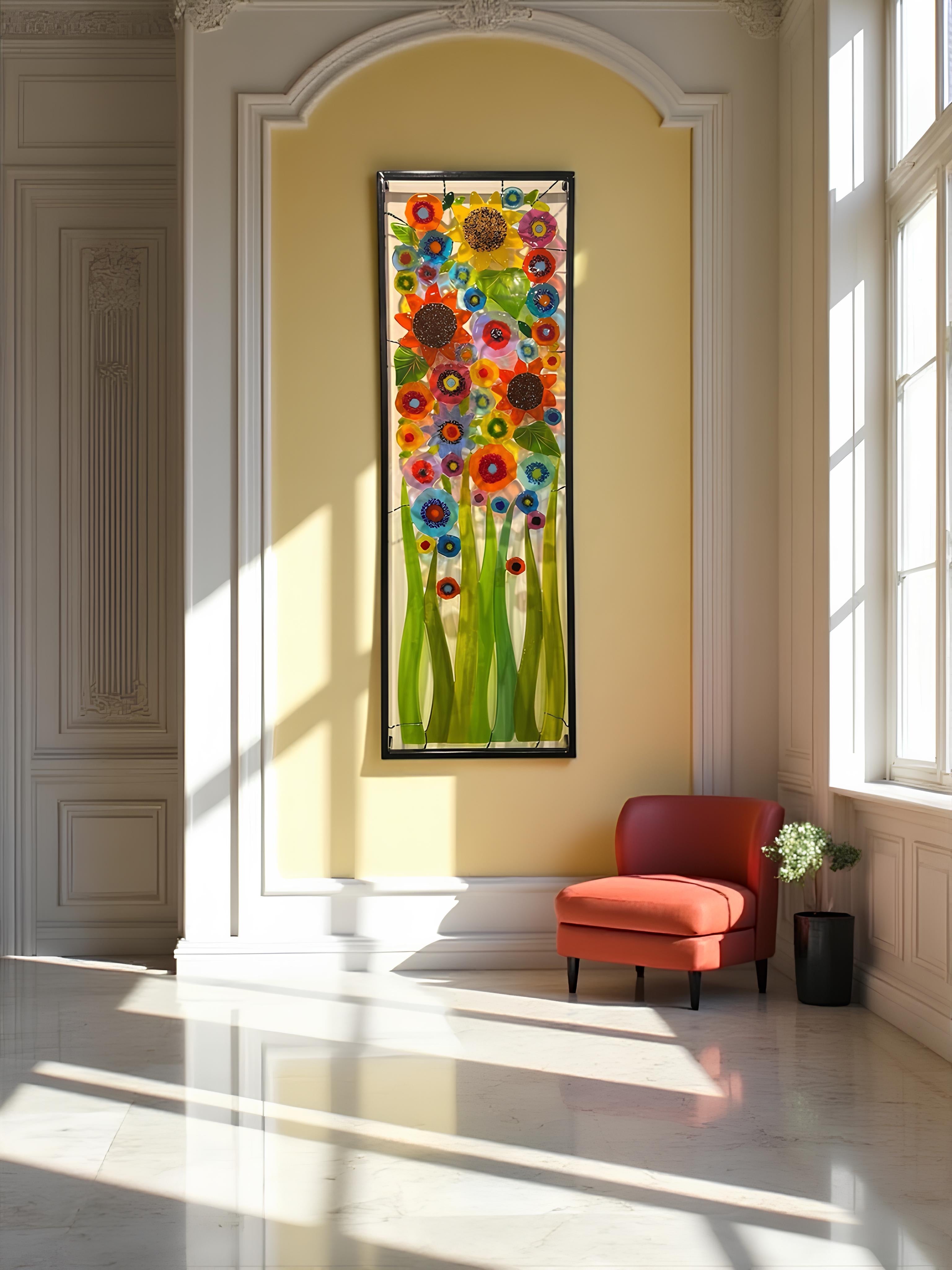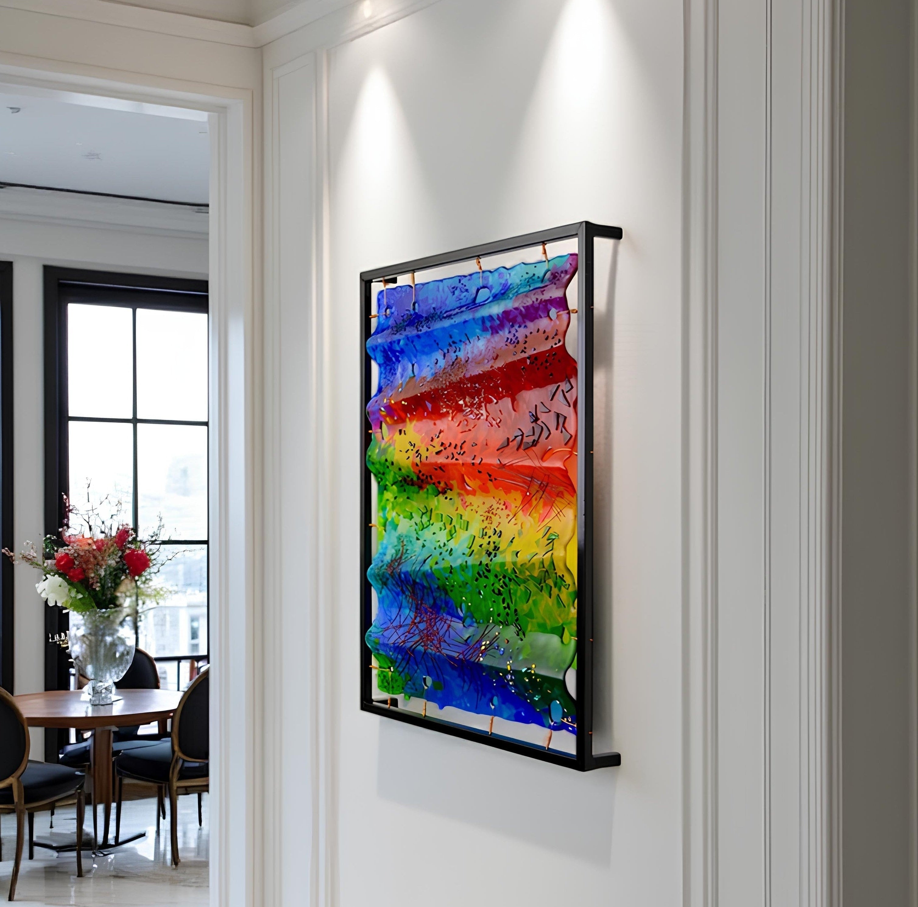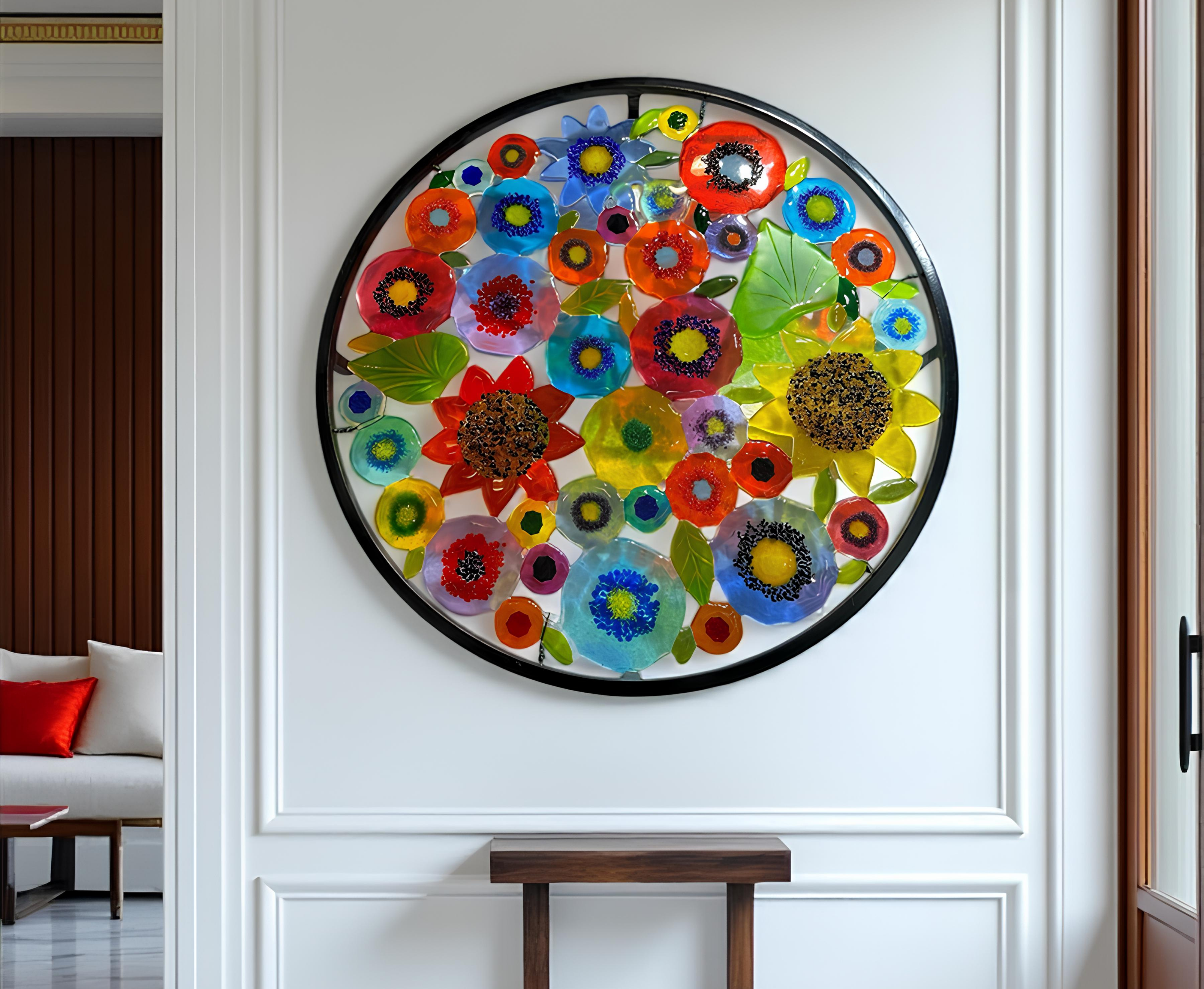 Fused glass combines vibrant colors, layered textures, and masterful craftsmanship into one harmonious creation. The process begins with carefully selected colored glass, cut and layered to create depth and contrast. Once arranged, the pieces are fired in a kiln at over 1,400°F, fusing into a single, smooth, and luminous work of art.
