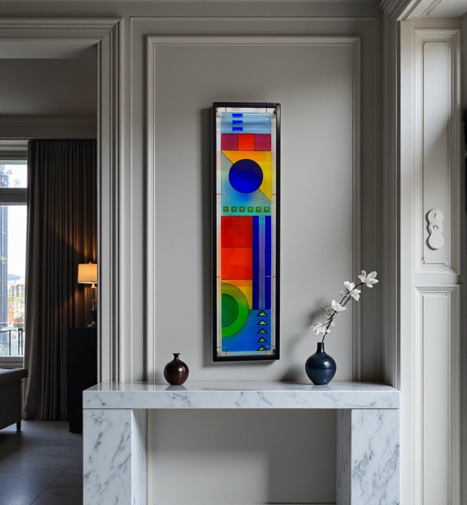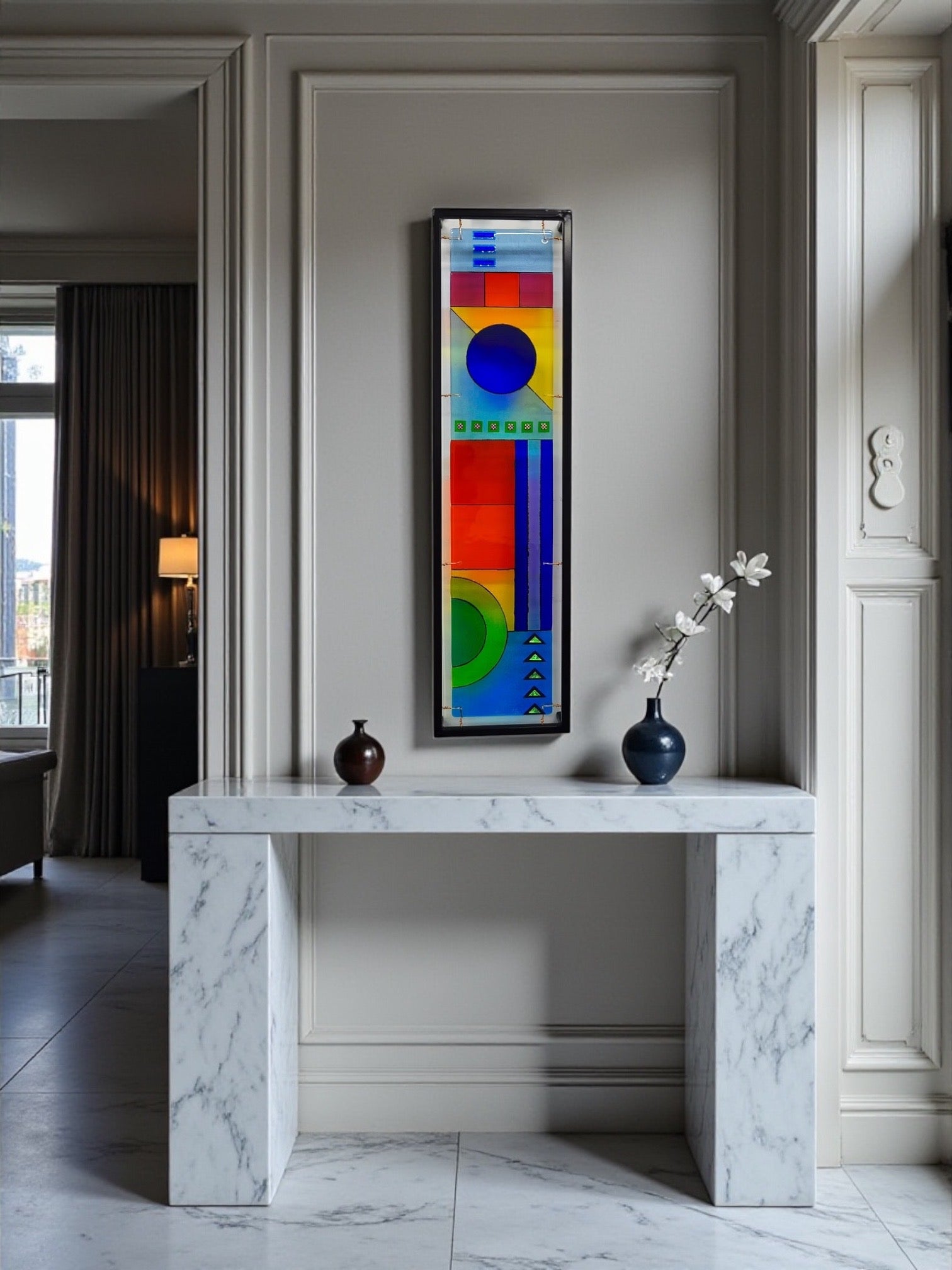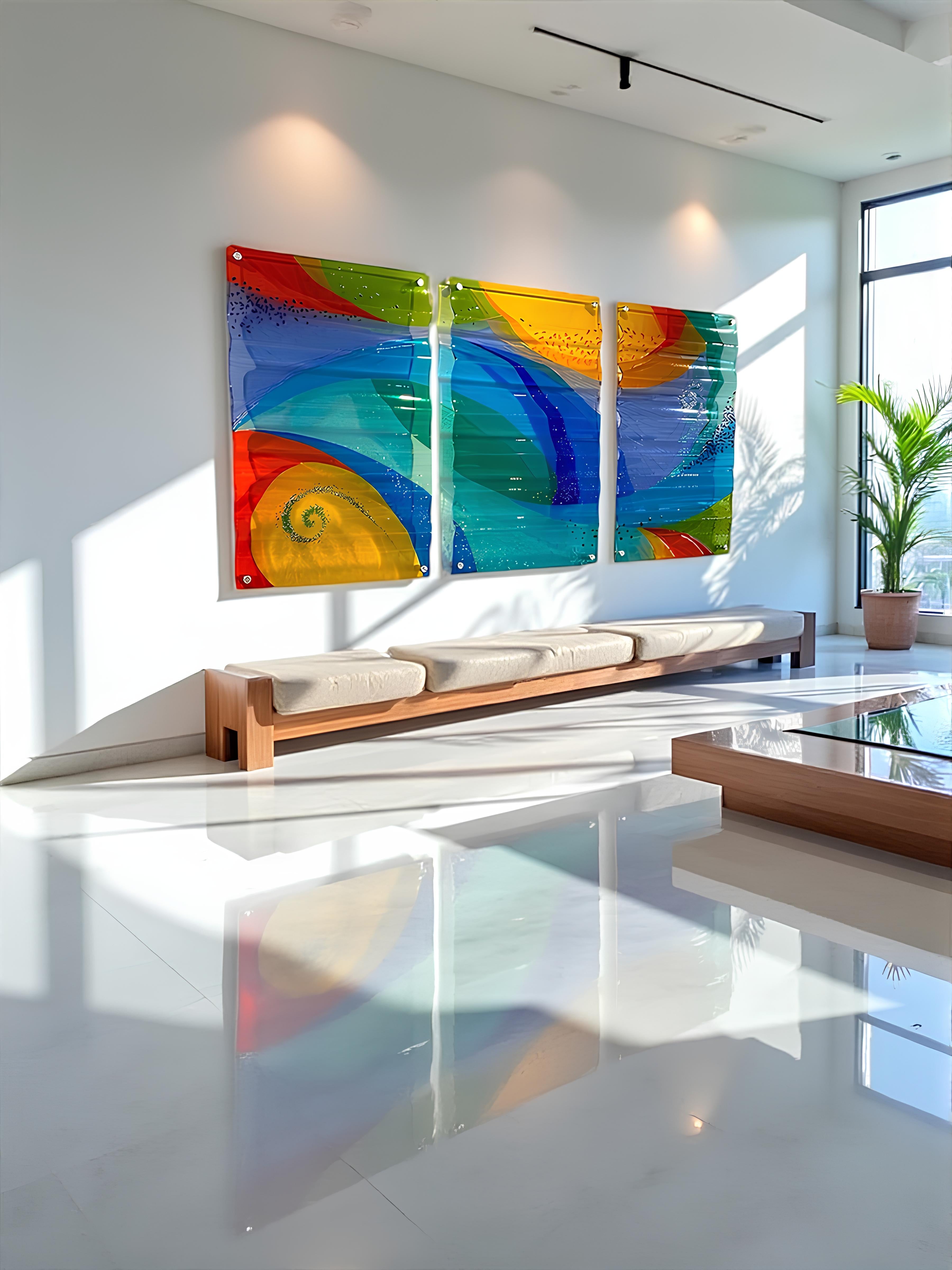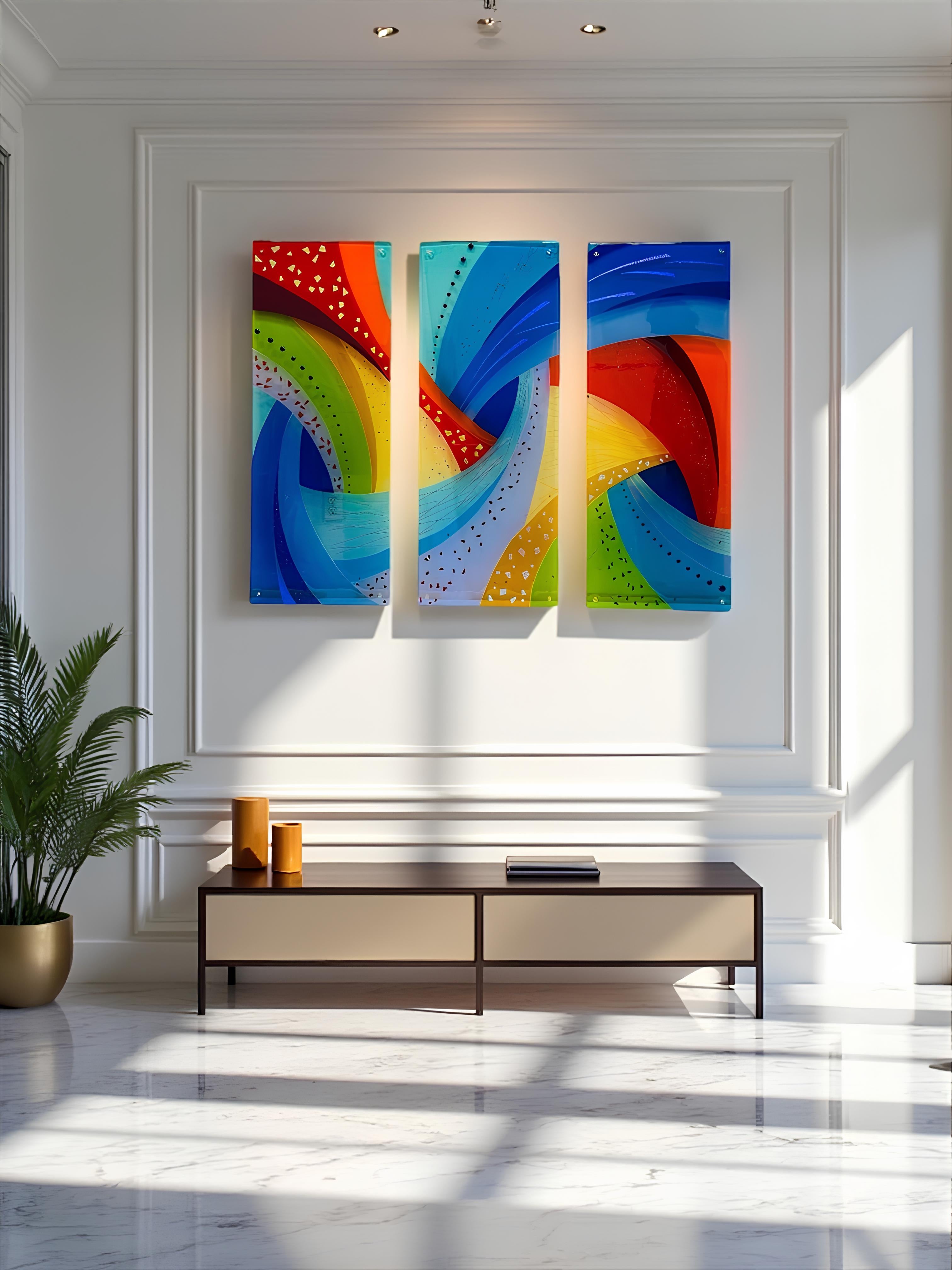 The Confetti Design series captures the joyful spirit of fused glass through vibrant fragments arranged in lively, dynamic compositions. Each piece radiates spontaneity, movement, and youthful charm.