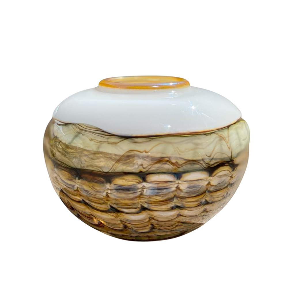 This piece is handcrafted by talented artisans using a special technique to obtain this unique look by layering different colored glass on top of each other.