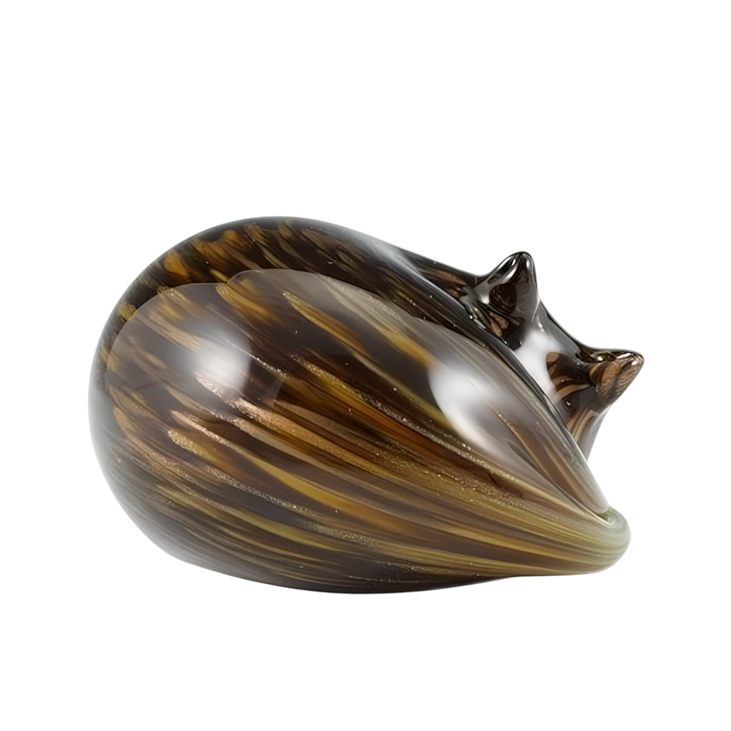 This palm-sized glass Sleeping Cat sculpture is handmade by the most talented artisans in the States. It is made by adding powdered colored glass to the molten glass gathered from the furnace, creating a variety of cat-like colors.