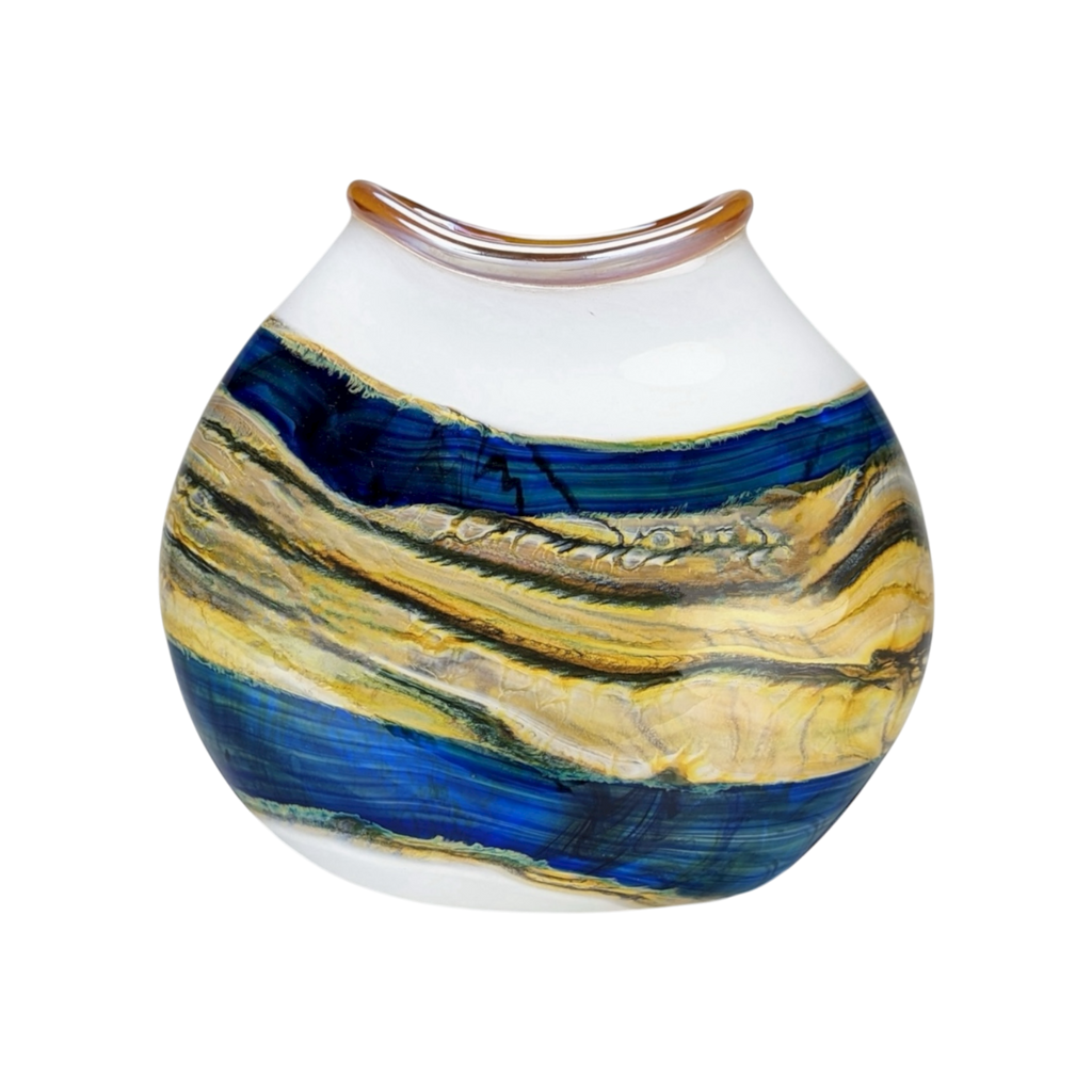 This piece is handcrafted by talented artisans using a special technique to obtain this unique look by layering different colored glass on top of each other.