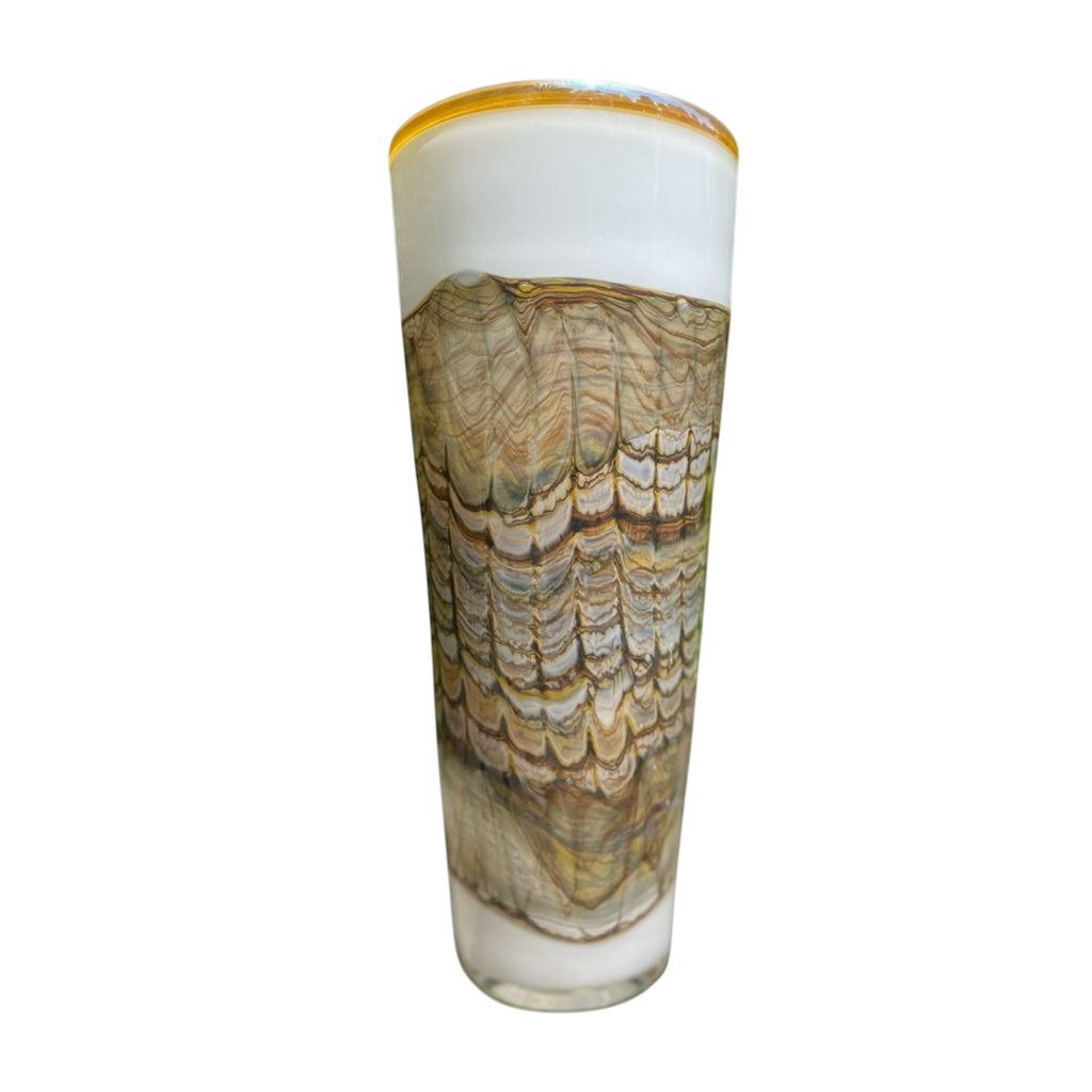 This piece is handcrafted by talented artisans using a special technique to obtain this unique look by layering different colored glass on top of each other.